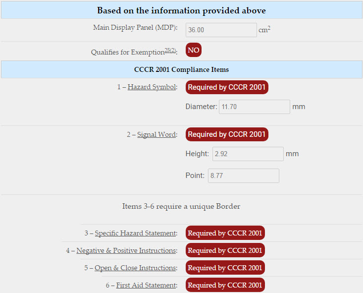 In order to properly implement the CCCR 2001, different bottle sizes must be evaluated separately. In an effort to simply this process for the industry, we do have a page that will tell you exactly what is required and at what sizes they need to be. We highly recommend that you use the ECTA Label Policy in your label design process.